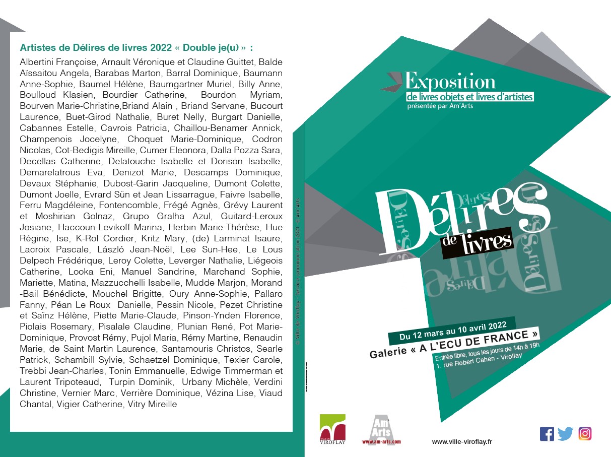 Albertini Françoise, Arnault Véronique et Claudine Guittet, Balde Aïssaitou, Barabas Marton, Barral Dominique, Baumann Anne – Sophie,Baumel Hélène, Baumgartner Muriel, Billy Anne, Boulloud Klasien, Bourdier Catherine, Bucourt Laurence, Bourdon Myriam, Bourven Marie – Christine, Briand Alain, Briand Servane, Buet Nathalie, Buret Nelly,Burgart Danielle, Cabannes Estelle, Cavrois Patricia, Chaillou – Benamer Annick, Champenois Jocelyne, Choquet Marie – Dominique, Codron Nicolas, Cot – Bedigis Mireille, Cumer Eleonora, Dalla Pozza Sara, Decellas Catherine, Demarelatrous Eva, Denizot Marie, Descamps Dominique, Devaux Stéphanie, Dubost – Garin Jacqueline, Dumont Colette, Dumont Joelle, Evrard Sün et Jean Lissarrague, Faivre Isabelle, Ferru Magdéleine, Fontemcomble, Frégé Agnès,Grévy Laurent et Moshrian Golnaz, Grupo Gralha Azul, Guitard – Leroux Josiane, Haccoun – Levikoff Marina, Herbin Marie – Thérèse, Hue Régine, Ise ,K – Rol Cordier, Kritz Mary, (de) Larminat Isaure, Lacroix Pascale, Laszlo Jean – Noël, Lee Sun – Hee,Le Lous Delpech Frédérique, Leroy Colette, Leverger Nathalie, Liegeois Catherine, Looka Eni, Manuel Sandrine, Mariette, Matina, Mazzucchelli Isabelle, Mudde Marjon, Morand – Bail Bénédicte, Mouchel Brigitte, Oury Anne – Sophie, Pallaro Fanny, Péan Le Roux Danielle, Pessin Nicole, Pezet Christine et SaÏnz Hélène, Piette Marie – Claude, Pinson – Ynden Florence, Pisalale Claudine, Plunian René, Pot Marie – Dominique, Provost Rémy, Pujol Maria, Rémy Martine, Renaudin Marie, de Saint Martin Laurence, Santamouris Christos, Searle Patrick, Schambill Sylvie, Schaetzel Dominique, Texier Carole, Trebbi Jean-Charles, Tonin Emmanuelle, Edwige Timmerman et Laurent Tripoteaud, Urbany Michèle, Verdini Christine, Vernier Marc, Verrière Dominique, Vézina Lise, Viaud Chantal, Vigier Catherine, Vitry Mireille