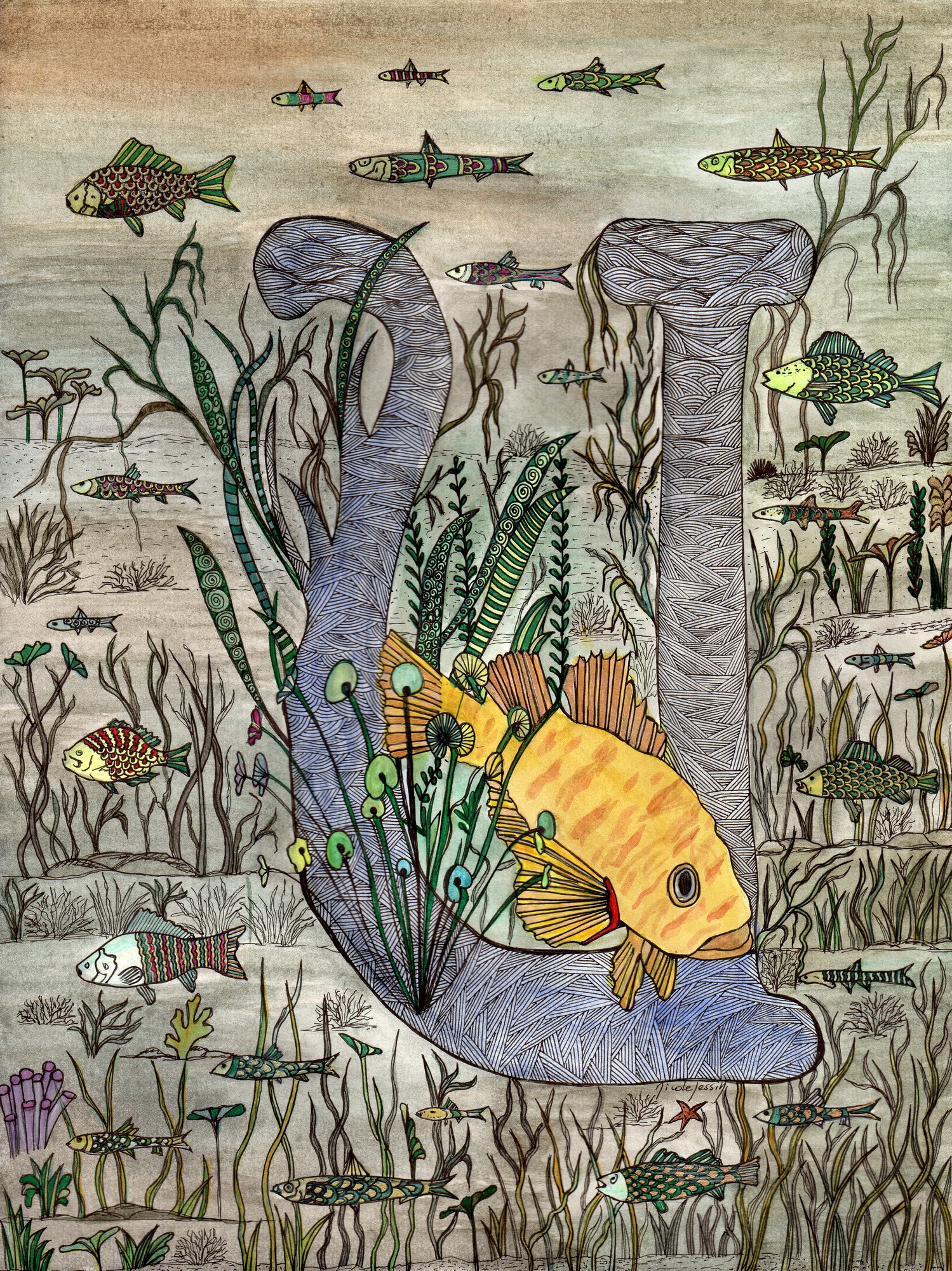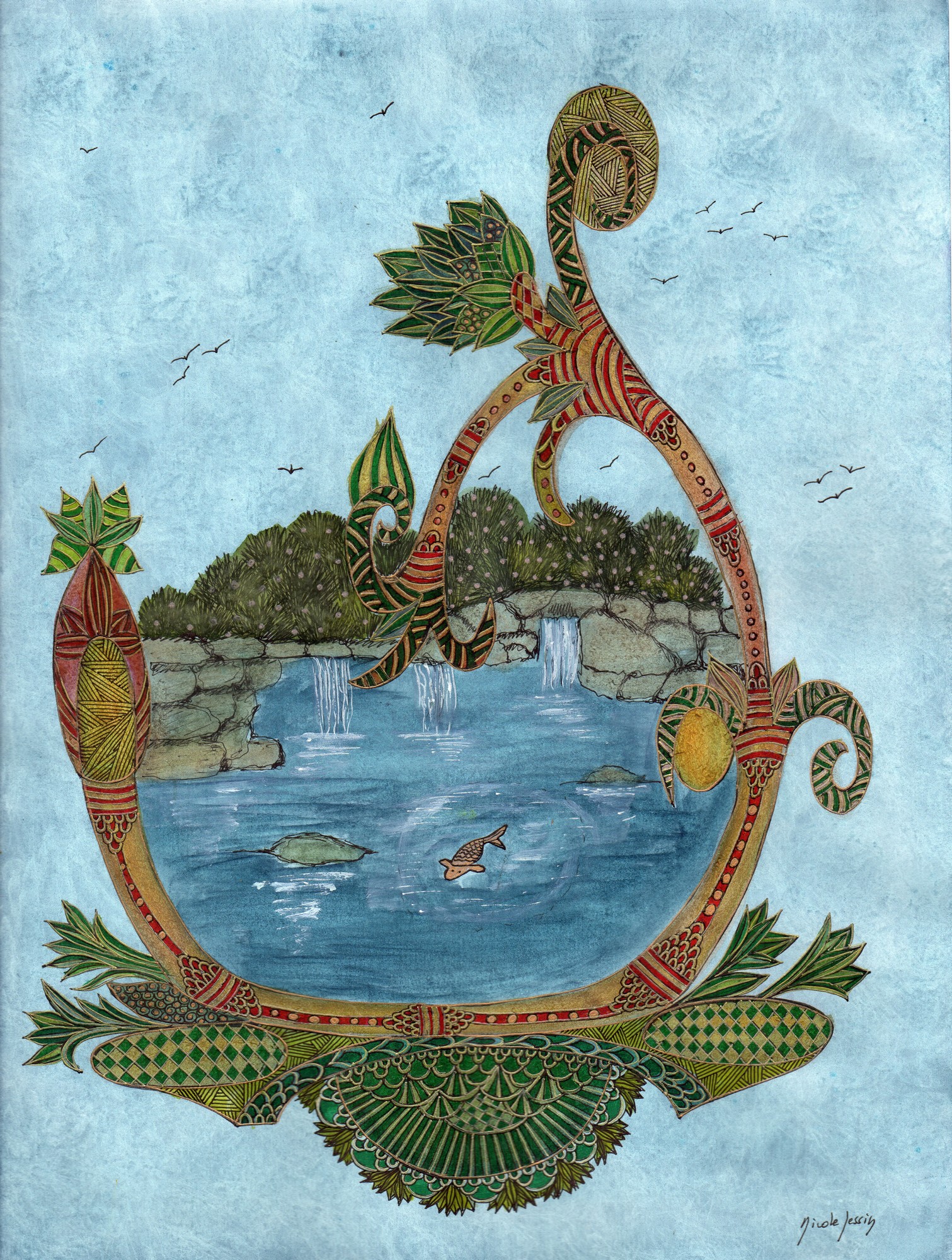 Le poisson d’or disparait et tous les petits poissons d’argent vont et viennent dans le courant en une danse joyeuse.