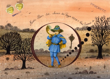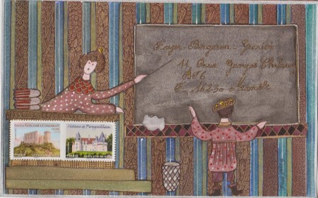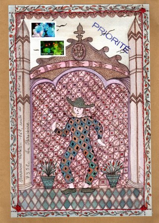 L’art postal (mail art en anglais) est un moyen de communication, une correspondance artistique qui utilise les services de la poste : c’est l’art d’envoyer des lettres décorées. La lettre et l’enveloppe deviennent ainsi un support d’expression artistique. Les courriers de mail art adressent donc un message tout autant par le texte que par l’image.