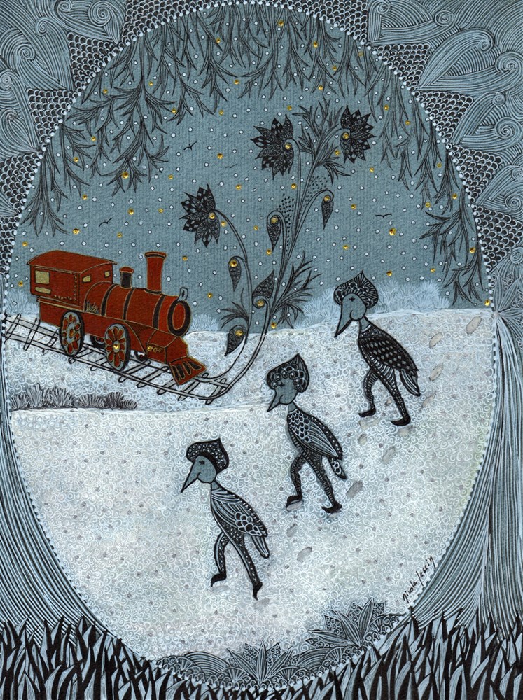 PASSAGE DU TRAIN EN HIVER ← Précédent Suivant → « Passage du train en hiver » ~ 2018. 32 cm x 24 cm ~ 120 €