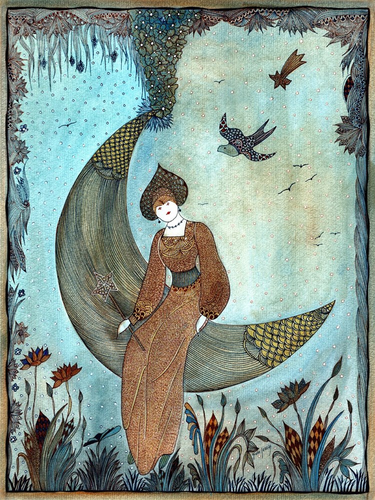 1.princesse envolee ← Précédent Suivant → Aquarelle & Encre de chine 2016. Princesse de lune et… d’autres. Thésée – © Adagp, Paris, 2017
