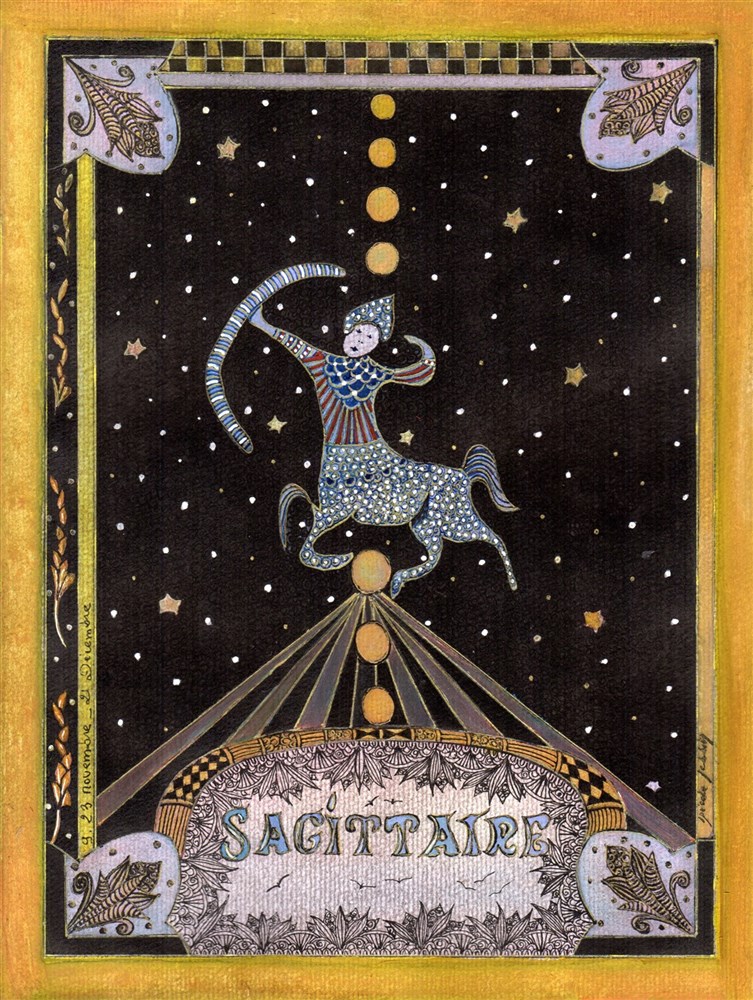 10.SAGITTAIRE ← Précédent Suivant → Aquarelle & Encre de chine 2018. Légendes Célestes. Dominique Barbier – © Adagp, Paris, 2017