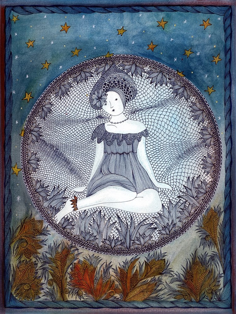 4.princesse doree ← Précédent Suivant → Aquarelle & Encre de chine 2016. Princesse de lune et… d’autres. Thésée – © Adagp, Paris, 2017
