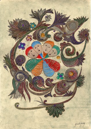 Aquarelle rehaussée d’encre de chine, de strass,
