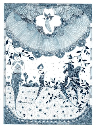 L’enfant absorbé par le flux de l’écume mousseuse, l’ombre de l’oiseau sur la lande parfumée, le mystère de la fée des mers, chaque aquarelle concoure à une reprise du conte proposé.