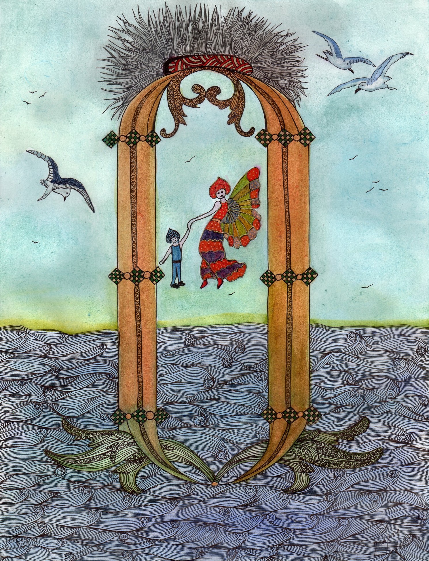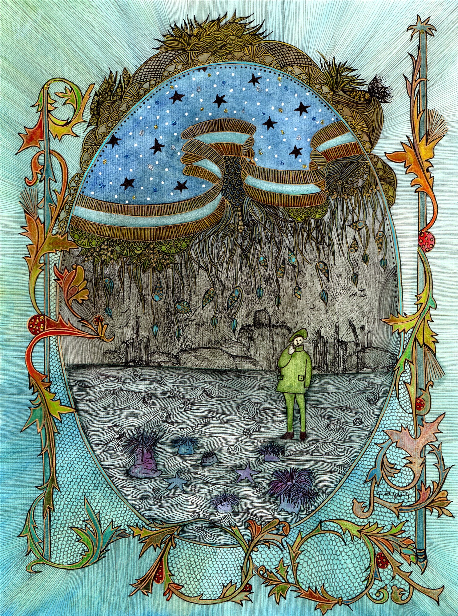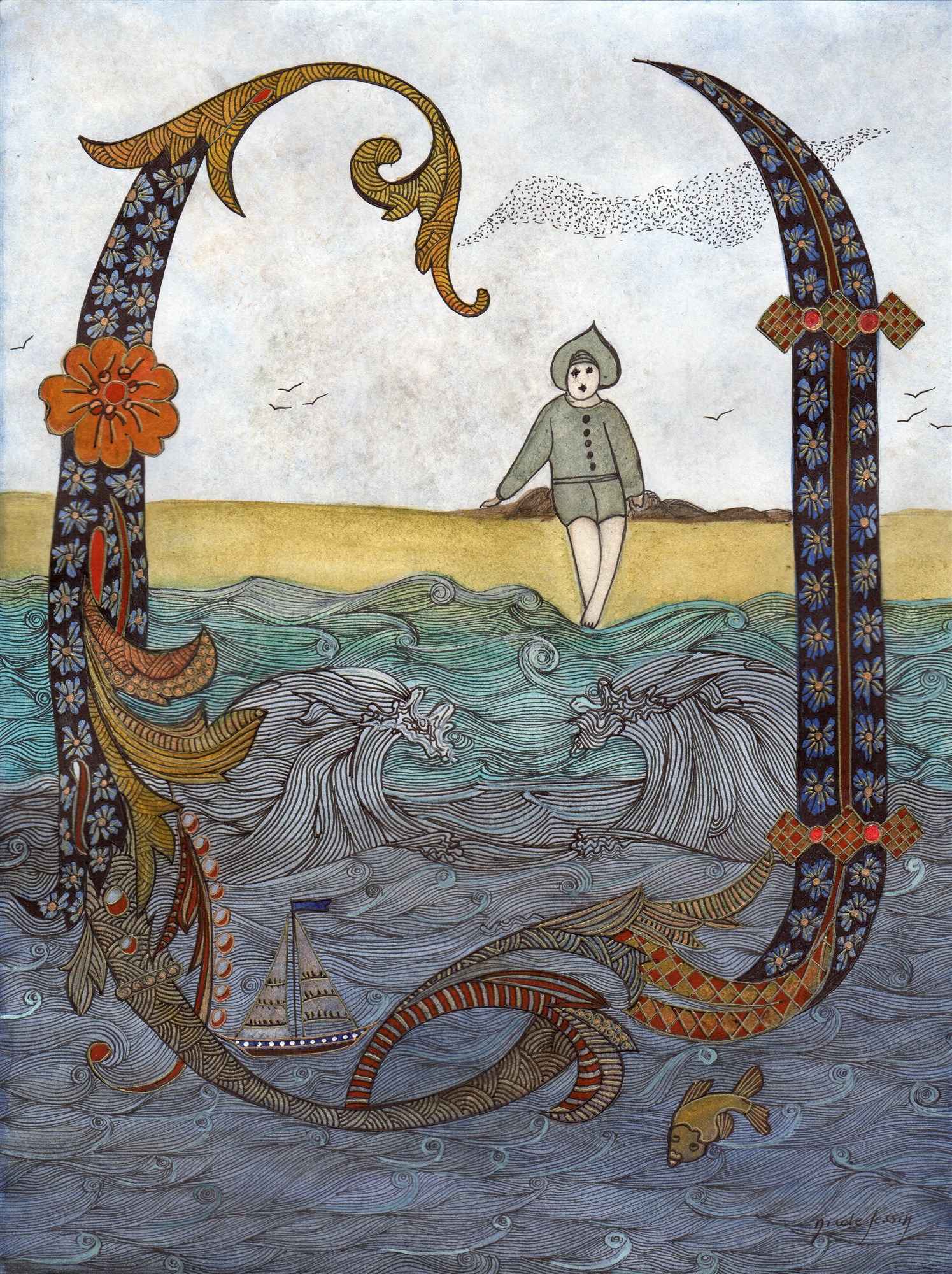 Gwenaël n’a pas oublié son coquillage magique. Il a une main dans celle de sa grand-mère et de l’autre il serre bien fort le coquillage au fond de sa poche comme pour se rassurer devant tant de splendeur.