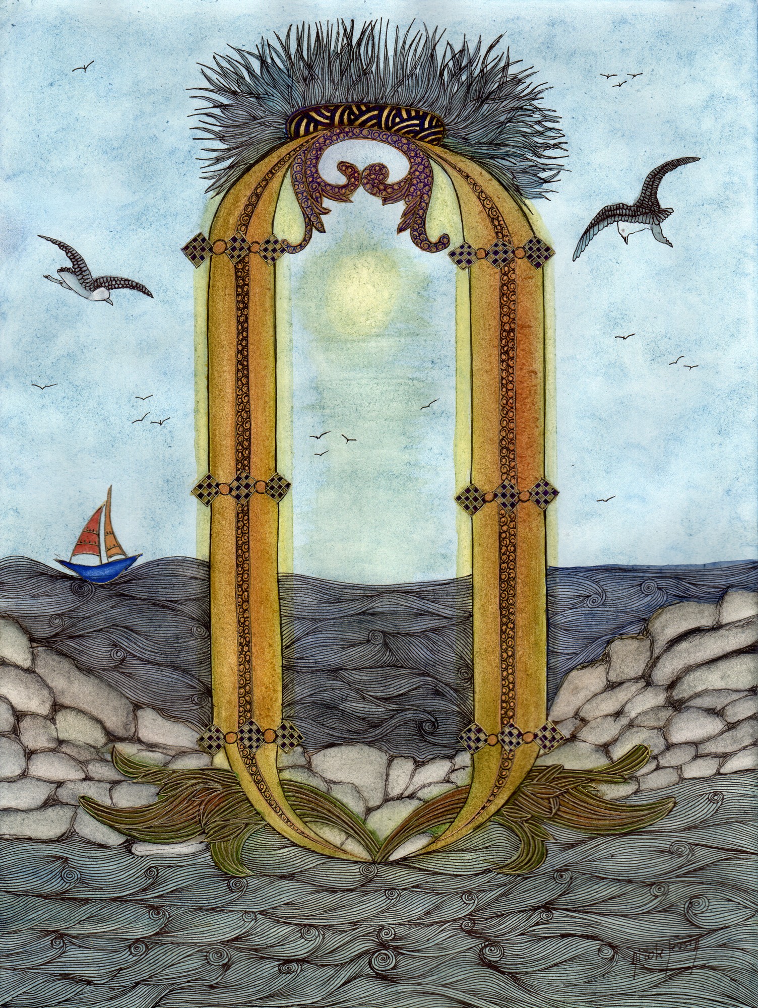 Il voit le jour, il voit la mer, il l’entend, il la respire et c’est le bonheur. Il sort enfin de la grotte et embrasse son coquillage. Il a le goût du sel sur les lèvres.