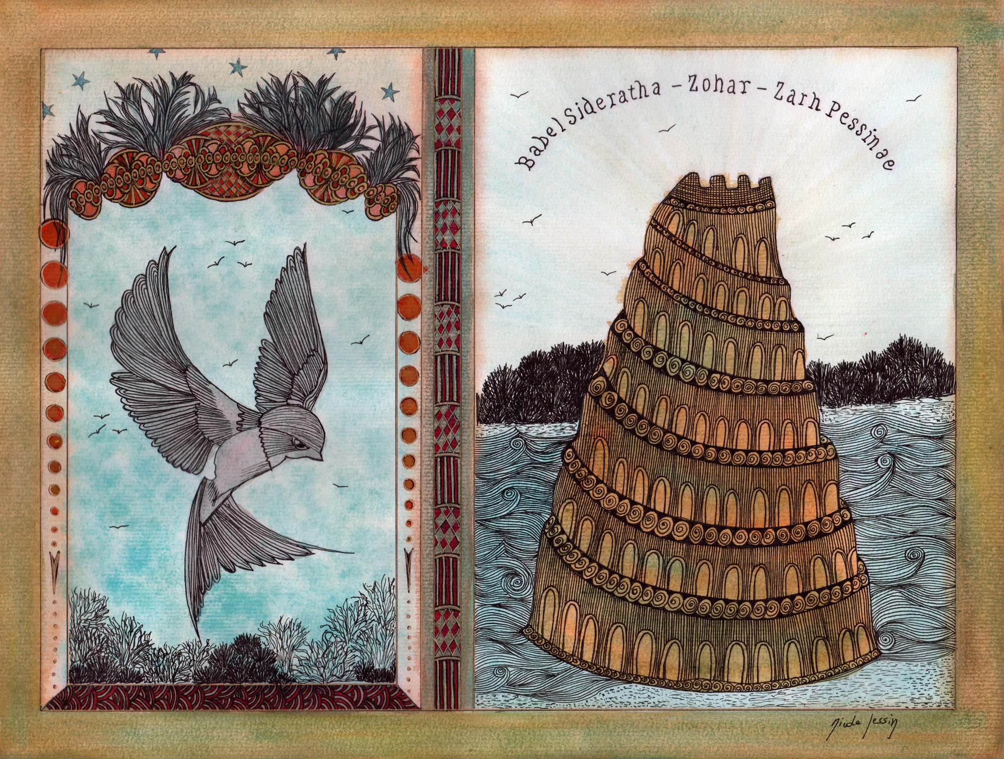 – Mon cher ami, vous avez brillamment passé l’épreuve. Vous êtes maintenant proche du but. Veuillez seulement me suivre. Sachez entretemps que Manhattan Transfer n’est qu’un des noms pour désigner le titre de l’ouvrage que vous désirez consulter. On devrait bien plutôt l’appeler : Le Syllabaire des syllabaires unissant tous les sens, possibles, hypothétiques et impossibles, passés, présents et à venir, y compris intemporels, imaginaires, inexistants et réels. Mais ce titre, d’ailleurs purement descriptif, s’avérant bien trop long et pourtant fort imprécis, on préfère l’appeler Zohar, ou Zarh Pessinae, ou bien encore, Babel Sideratha.