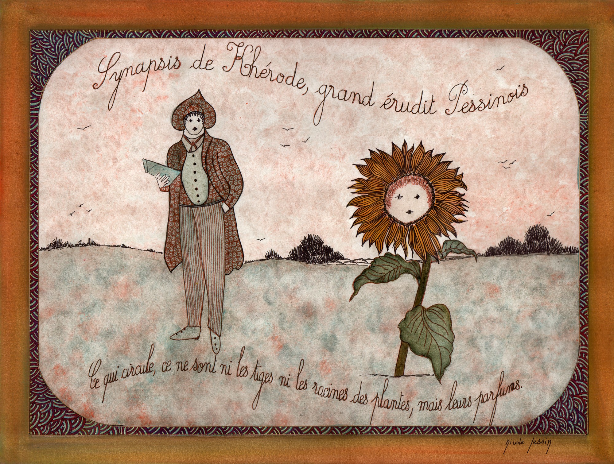 – Je l’entendais aussi de cette façon, répondit-t-il. Je dois toutefois vous concéder que je ne serais pas non plus fâché si d’aventure, quelques extraits de ce que vous allez maintenant voir et lire, contaminaient subrepticement les livres officiels dont le public a l’habitude, mais à de certaines conditions particulières dont nous reparlerons plus tard. Car, comme le dit le grand érudit Pessinois Synapsis de Khérode : « Ce qui circule, ce ne sont ni les tiges ni les racines des plantes, mais leurs parfums. »