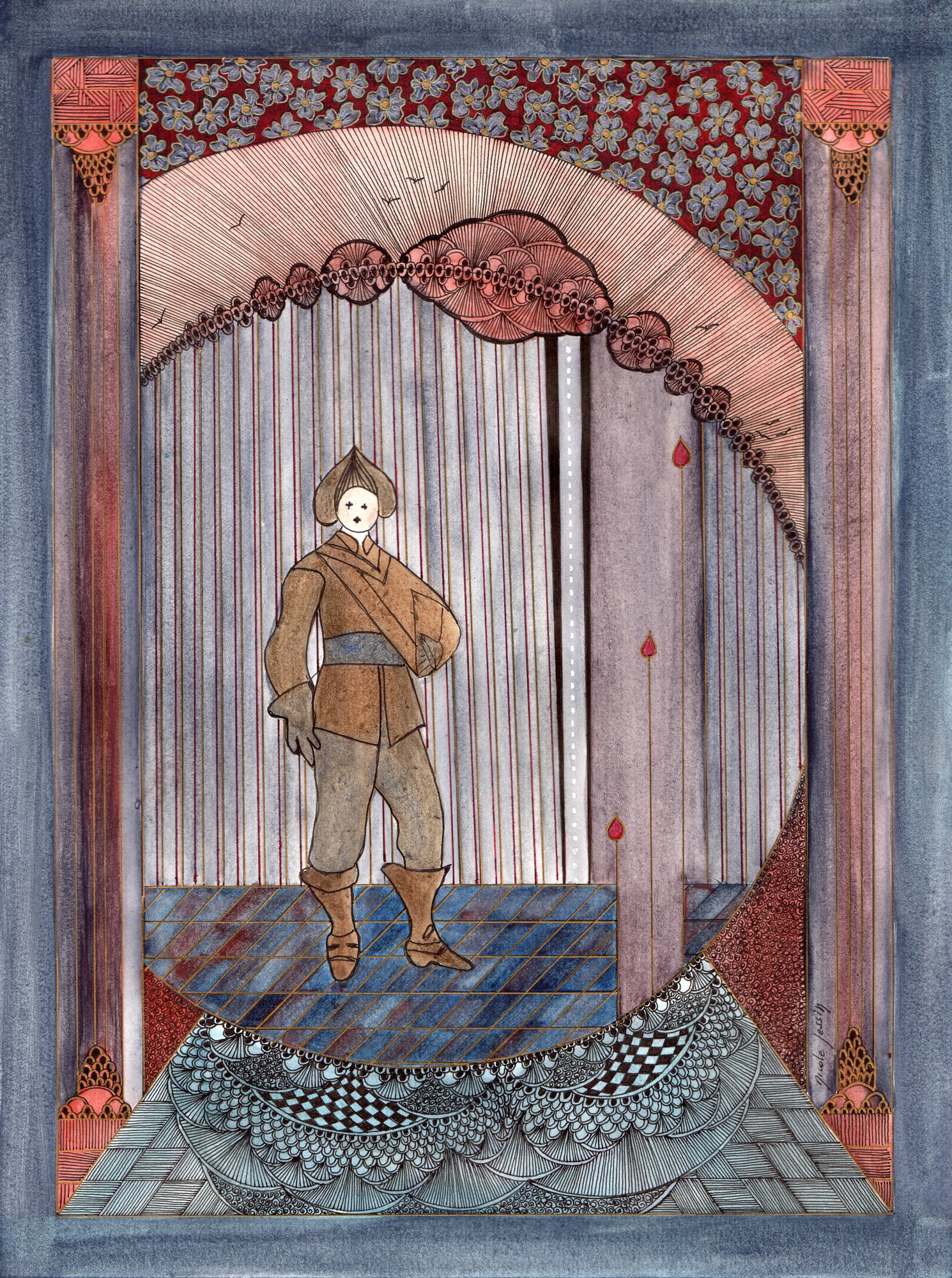Devant la meurtrière voilée d’une tenture rouge sombre, Renault de Trestemore, déjà vêtu de deuil, se tenait, de dos.