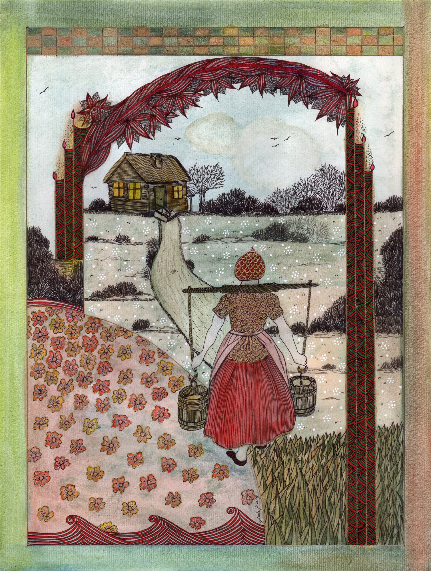 Il n’était pas rare alors que les enfants l’entourent et jouent près d’elle, s’éloignant, revenant. Pour eux, elle versait l’eau fraîche dans des timbales de poterie grossière, pour eux elle inventait des chansons.