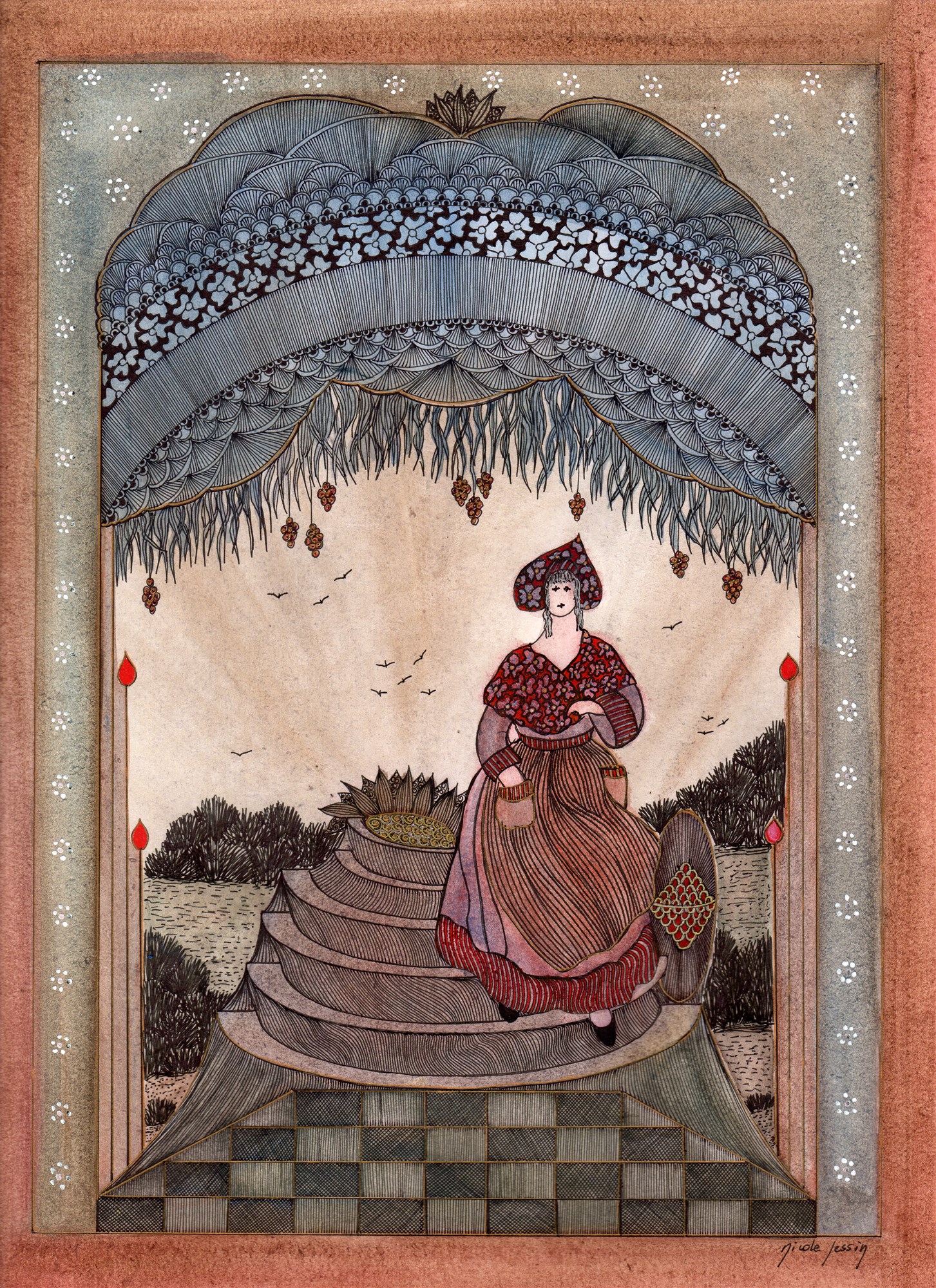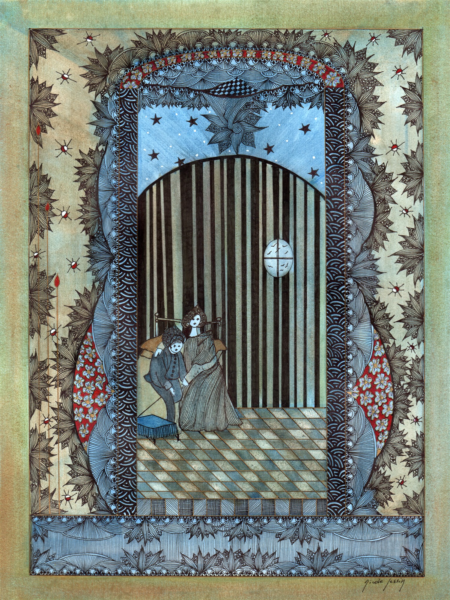 Au petit jour, le corps léger sursauta dans les bras de la Dame. Les yeux de l’enfant s’ouvrirent grands et elle y décrypta ce que si souvent elle avait lu. Elle sourit et la petite fille apaisée, soupira, comme elle se serait endormie.