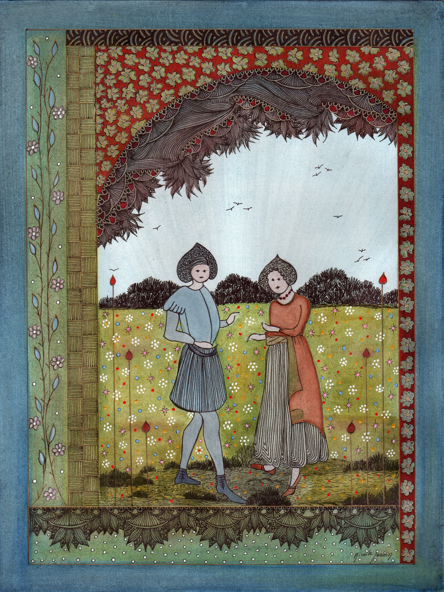 Ils n’avaient été proches que par ces fables partagées, lui écoutant, elle narrant. Il n’aurait pas été surpris si la dame, devenue à son tour voix ou signes sur un parchemin, s’était évanouie ou abîmée en ses contes, comme on pouvait, dit-on, passer au travers d’un miroir ou s’enfoncer soudain dans un mur.
