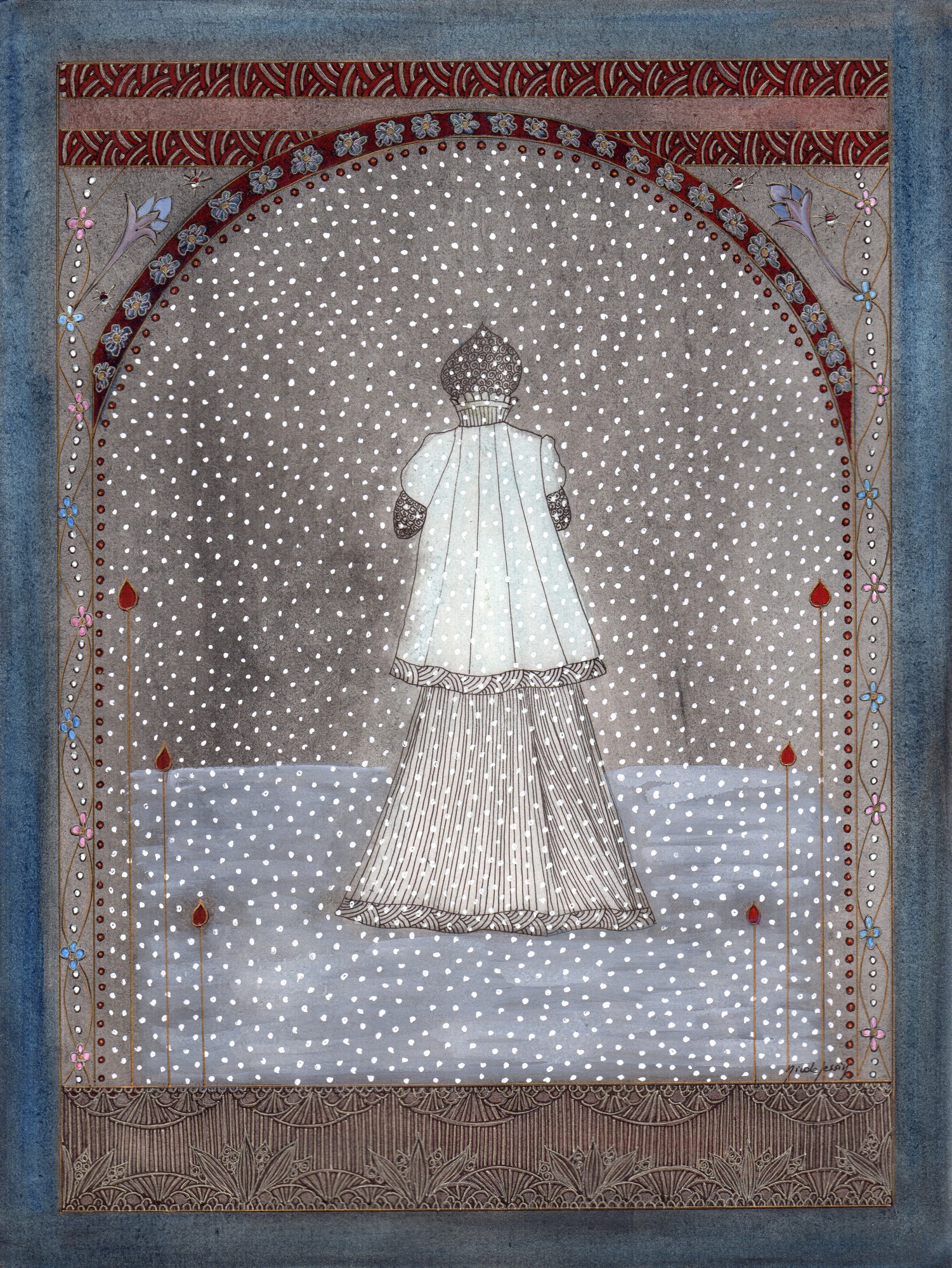 Mais il voyait bien le seigneur combien elle était belle dans sa robe et sa cape de lainage blancs , l’irréelle chevelure pourtant enfermée dans son voile.. Belle, malgré les rares rides d’un visage qui a vécu et souffert, d’une existence et d’une douleur qui lui resteraient ignorées .
