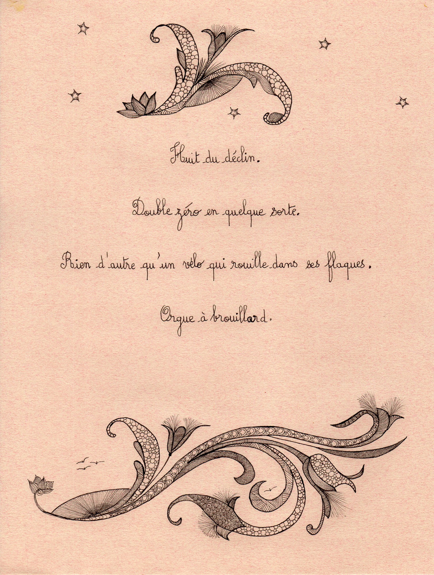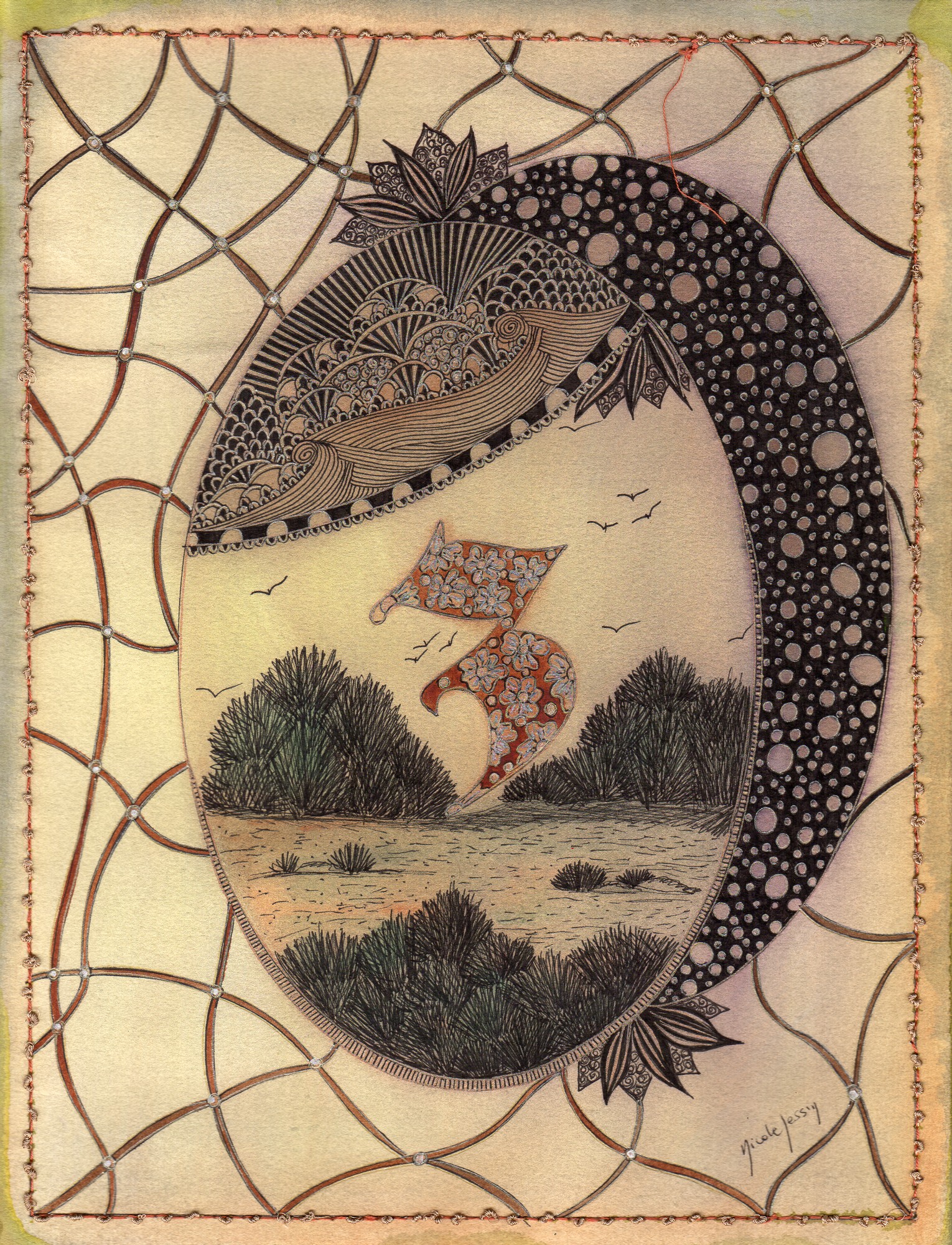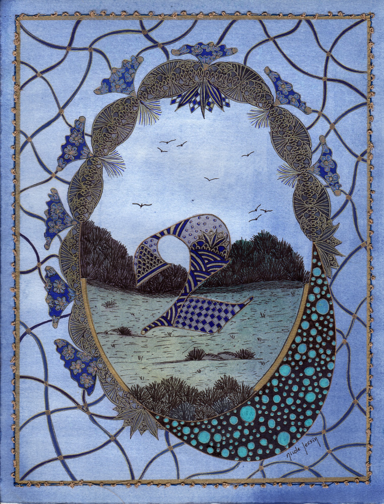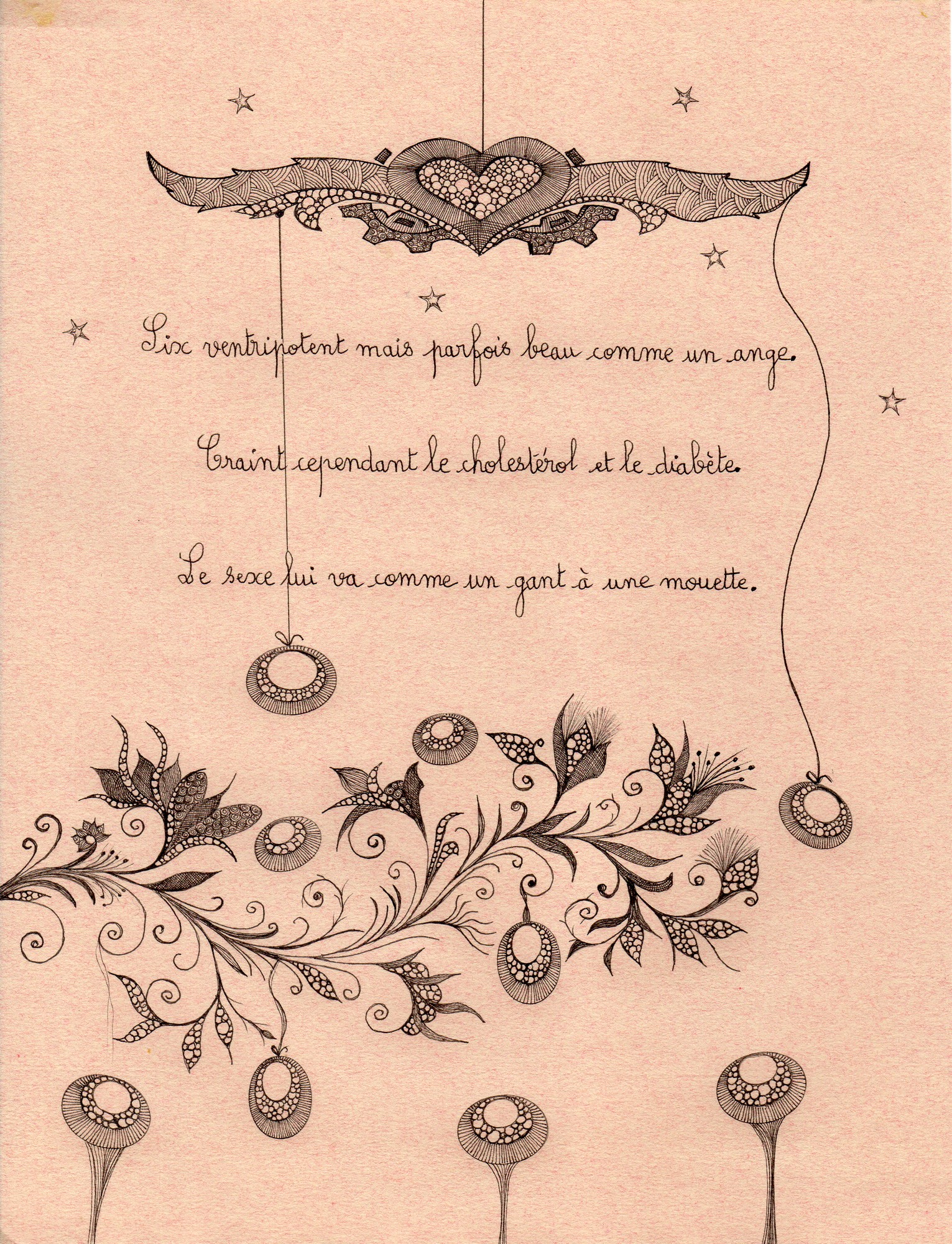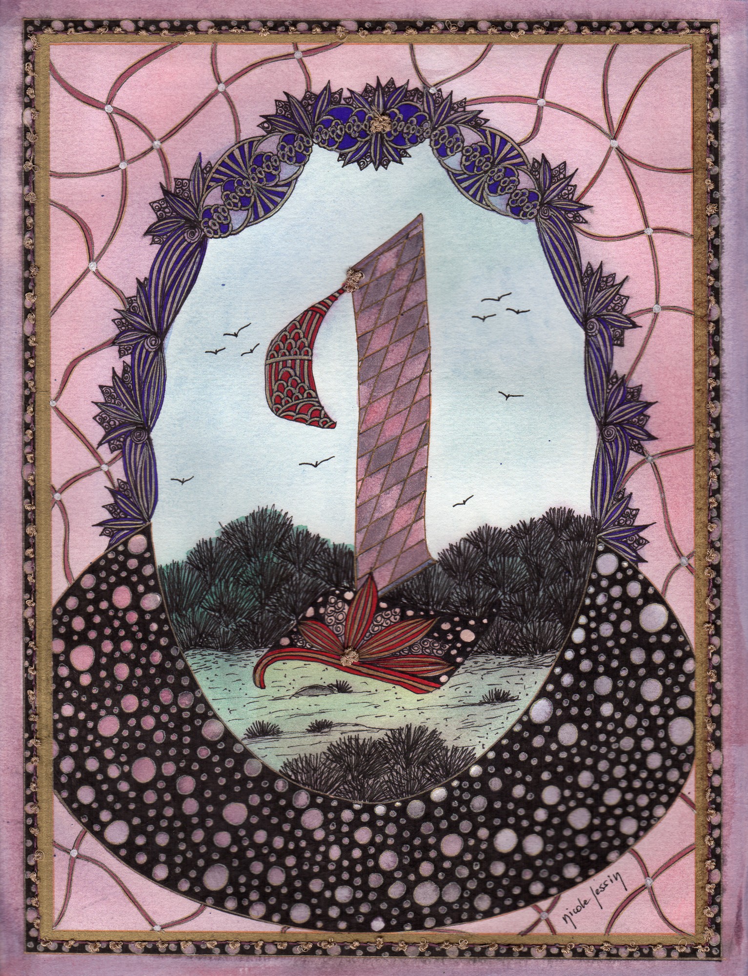 Cet ouvrage présente un poème de Jean-Paul Gavard-Perret. Il est illustré d’aquarelles rehaussées d’encre de Chine. Les illustrations sont enrichies de broderies réalisées au fil DMC et mêlées de fil de soie doré. L’ensemble est relié dans une couverture enluminée et parachevé par un colophon illustré.