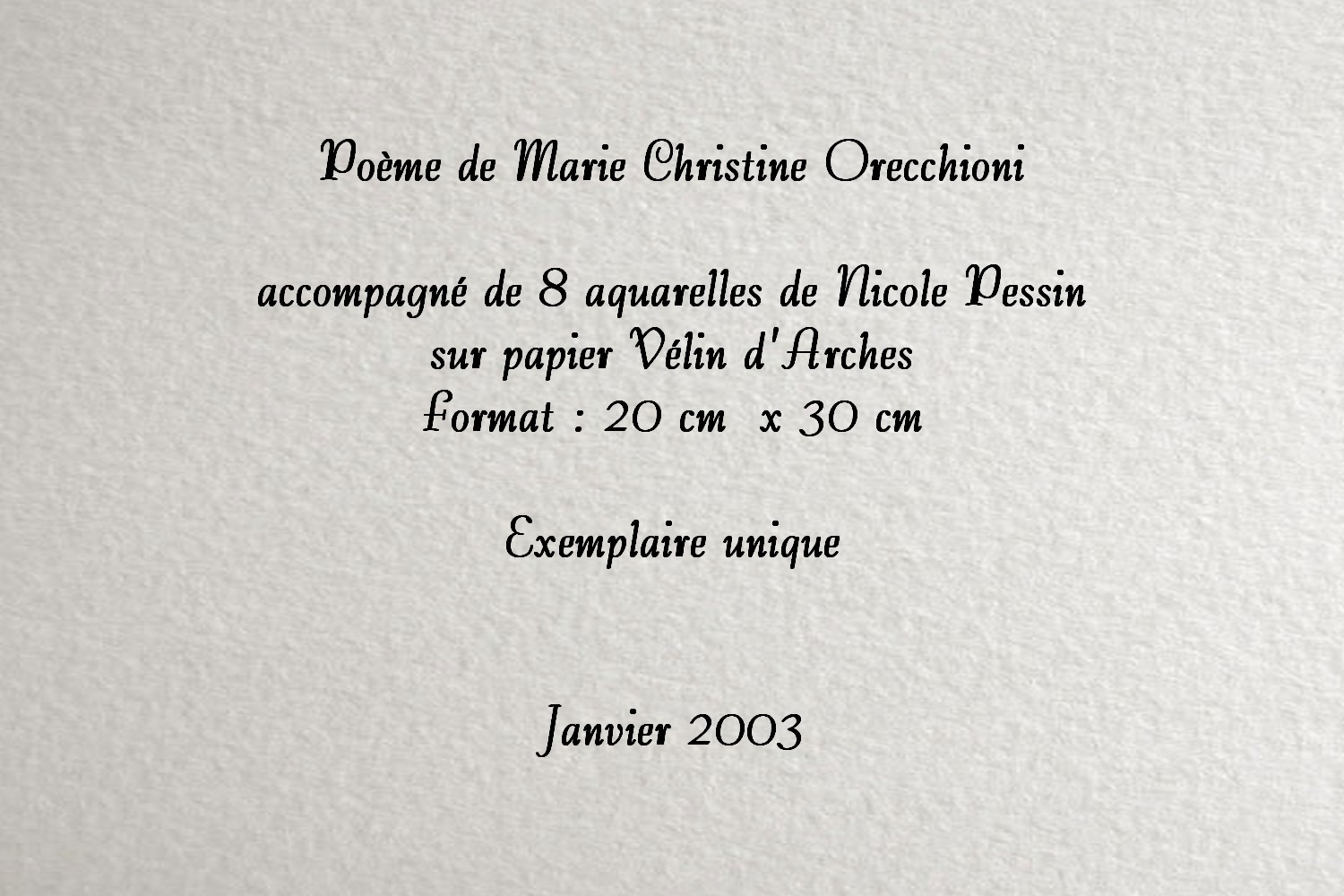 Exemplaire unique – Janvier 2003